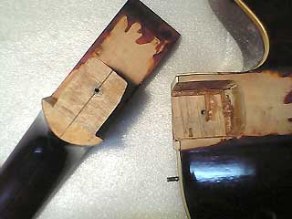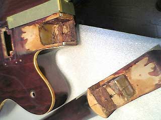 ネックが外れました! 水分で接着剤を柔らかくして外します。 |