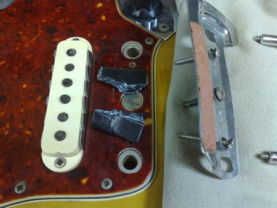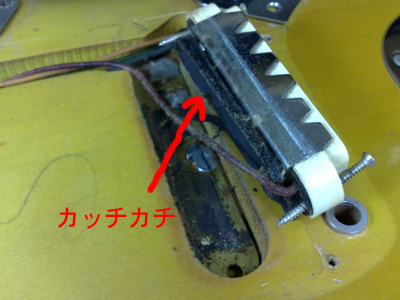 新しいスポンジゴムを入れてピックアップ高さを調整しました。 |