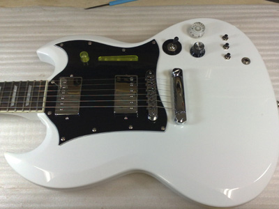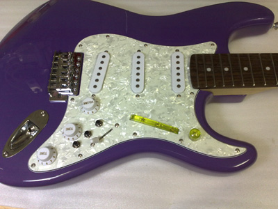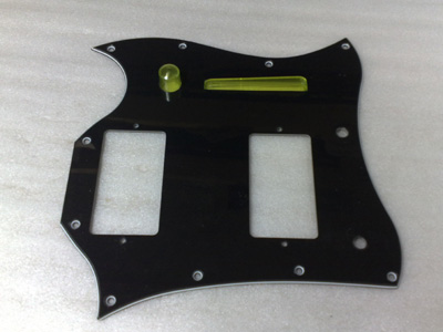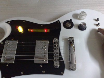 ピックガードを加工し、光線銃から外したランプのカバーを取り付けました。 |