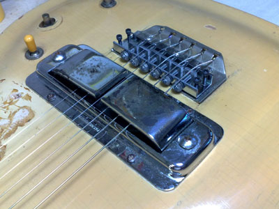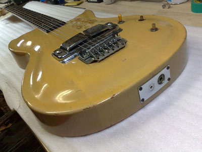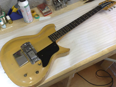 リッケンバッカーのごく初期のモデル、Combo600。 大した修理ではないのですが、珍しいギターなので載せてみました! |