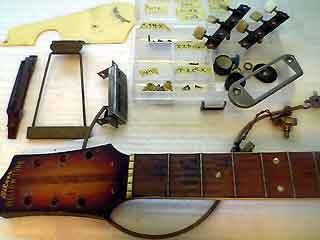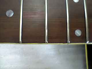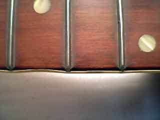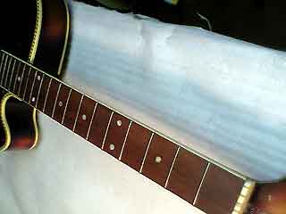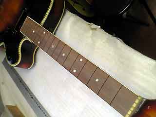 指板は木が痩せてフレットが飛び出し、バインディングも浮いてました。 |