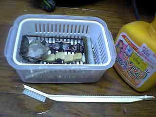 サビや汚れのひどいパーツは洗剤で洗浄。 金属磨きや超音波洗浄器なども使用し、ビス1本1本まで可能な限りクリーニングします。 |